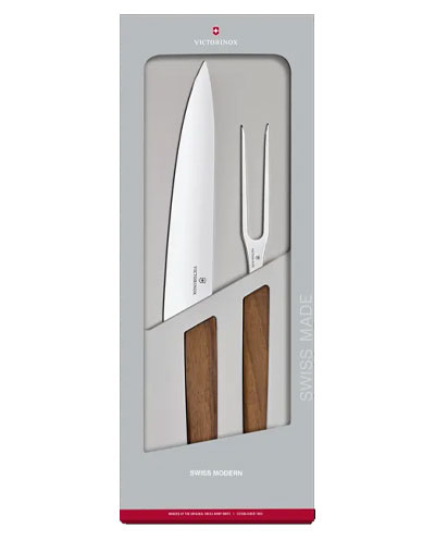 جایی که زیبایی واقعی با کیفیت واقعی روبرو می شود: با ست حکاکی مدرن سوئیس ما با 2 قطعه آشنا شوید. درست مانند هر قطعه در مجموعه، چنگال حکاکی و چاقو به صورت ارگونومیک برای راحتی نهایی طراحی شده اند. در حالی که چنگال دو شاخه همه چیز را محکم در جای خود نگه میدارد، تیغه فولادی ضد زنگ با لبههای مستقیم بدون دردسر هر نوع گوشتی را برش میدهد: علاوه بر این، دسته فوقالعاده نرم و زیبای چوب گردو به راحتی در دست شما قرار میگیرد.