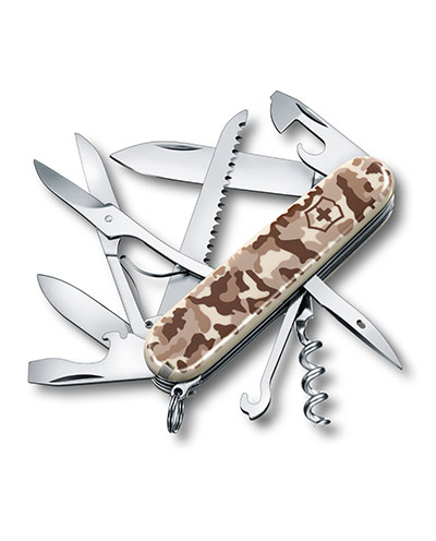 تیغه، بزرگ / تیغه، کوچک / پیچ چوب پنبه / قیچی / اره چوب / قلاب چند منظوره / جاکلیدی / موچین / خلال دندان / بطری بازکن / درب بازکن قوطی / پیچ گوشتی 6 میلی متر / پیچ گوشتی 3 میلی متر / سیم کش