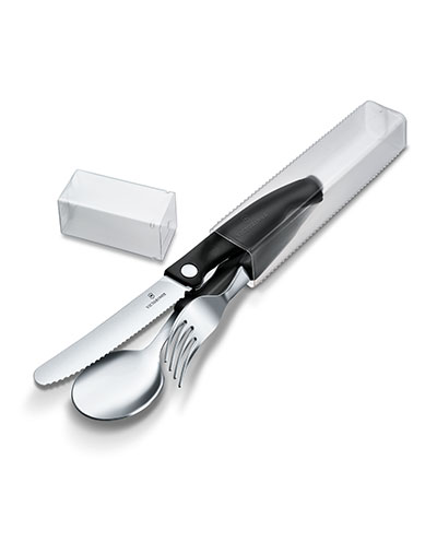 این مجموعه چندمنظوره با طراحی جسورانه خود، کیفیت استثنایی تیغه ویکتورینوکس و تطبیقپذیری عالی را ارائه میدهد. چاقو، چنگال و قاشق کلاسیک سوئیسی به سرعت به یک سهگانه قابل اعتماد تبدیل میشوند. با انتخاب از دو گزینه رنگارنگ دسته، این محصولات نگرش تند و تیزبینانهای به چنگال رومیزی و قاشق غذاخوری شما میبخشند. به همین سادگی میتوانید کاسه میوه یا سبد پیکنیک خود را با استایل و اعتماد به نفس آماده کنید.